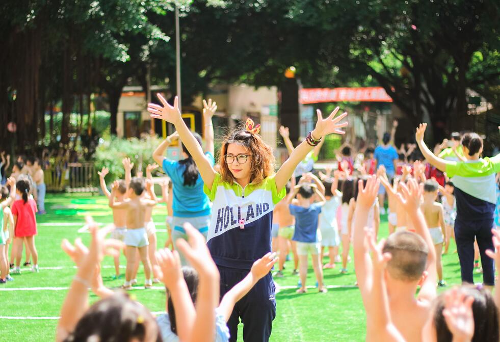 谁说在金太阳幼儿园只有小孩子会运动?