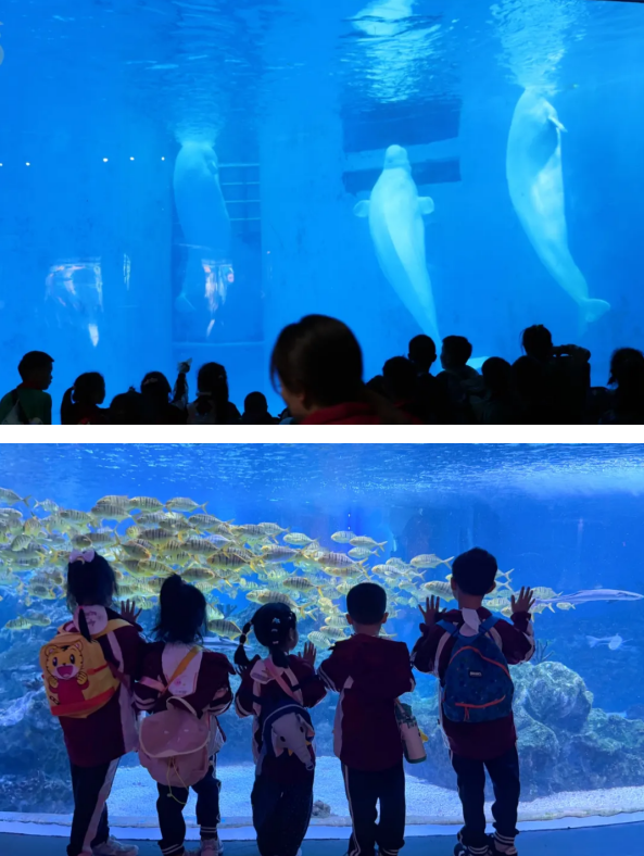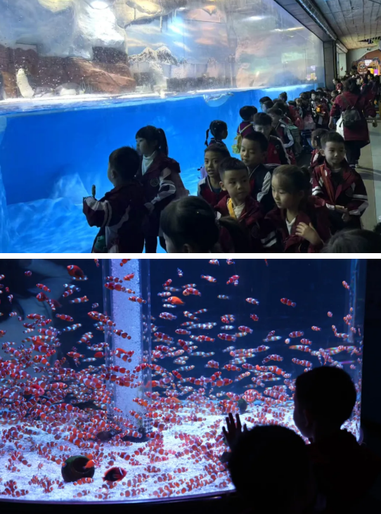 午后,孩子们继续他们的探索。在北极村,与威武的北极熊、灵巧的海豹隔窗相望;在梦幻水母宫,五彩斑斓的水母随着灯光变幻,如水中绽放的花朵,让孩子们仿佛置身于一个静谧而神奇的童话世界。