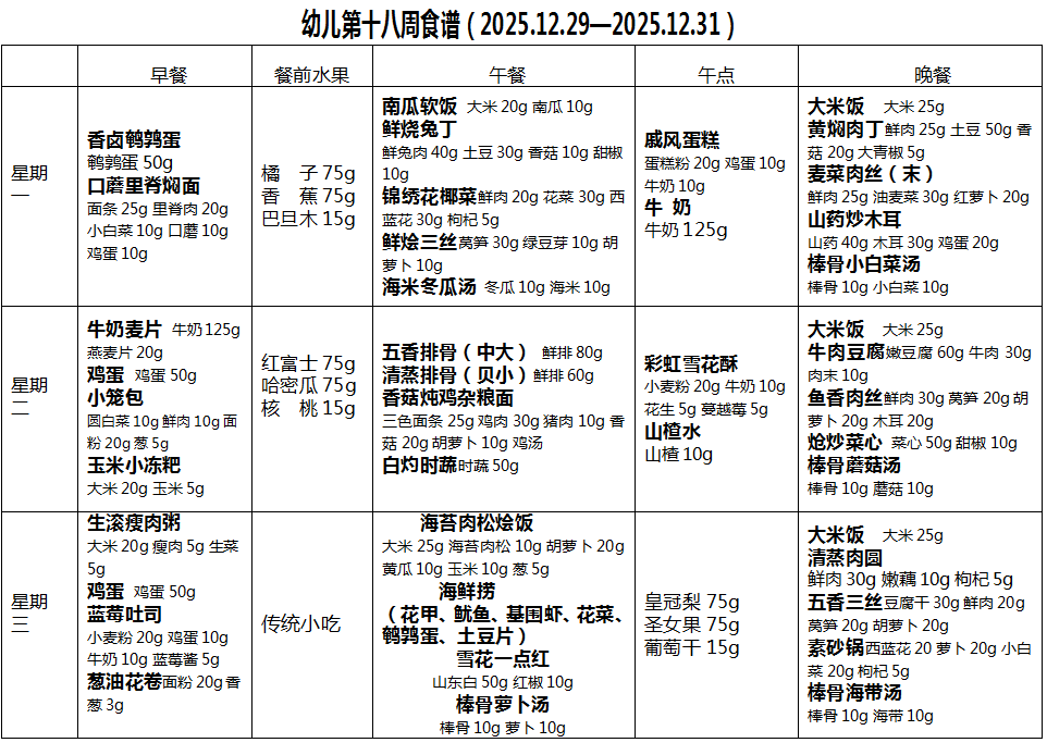 2025秋第18周幼儿带量食谱
