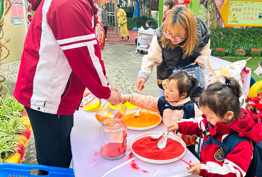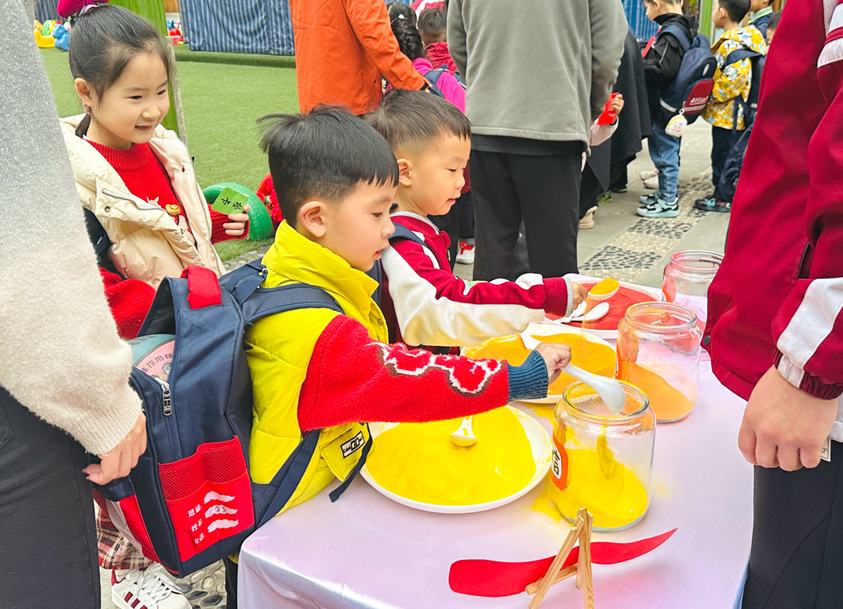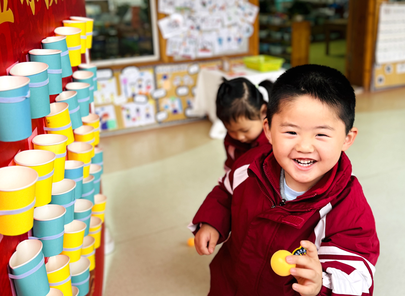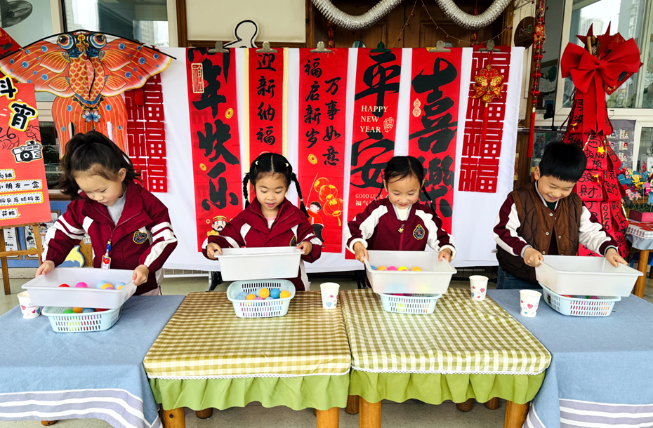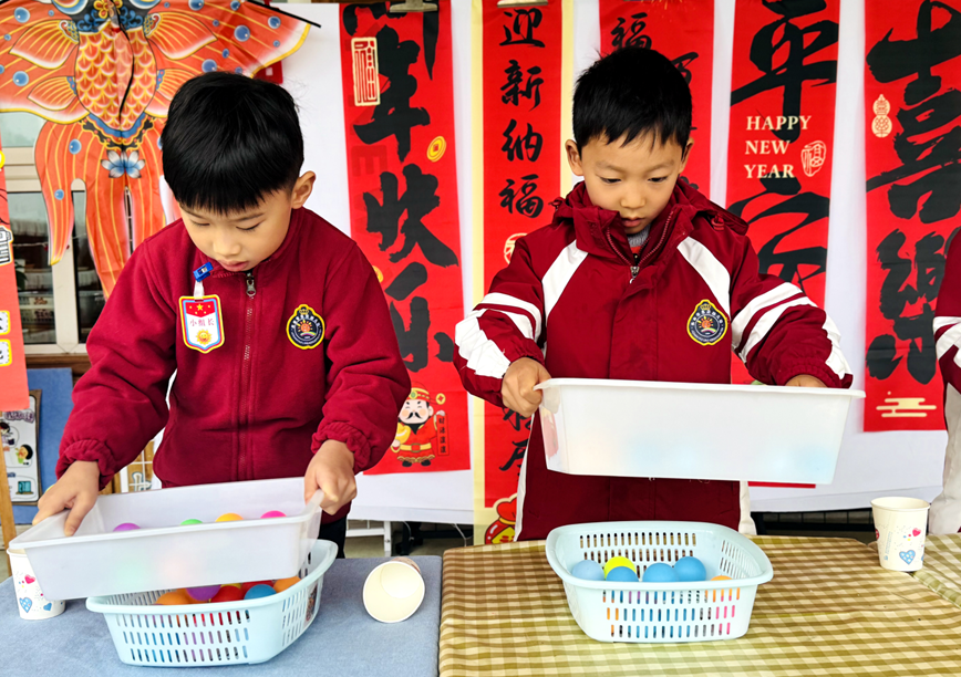 随后开展的“迎元宵”游园会将活动推向高潮。大班组“摇元宵”“画元宵”“挑灯笼”,中班组“抢元宵”“夹元宵”“金球接福”,小班组“球跃福门”“敲鼓祈福”等游戏,让孩子们在欢声笑语中体验传统民俗,收获成长快乐。